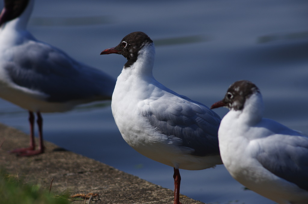 池のユリカモメ。 すっかり夏羽になった者。 抜け替え途中の者。 まだ冬羽の者とまちまちだ。