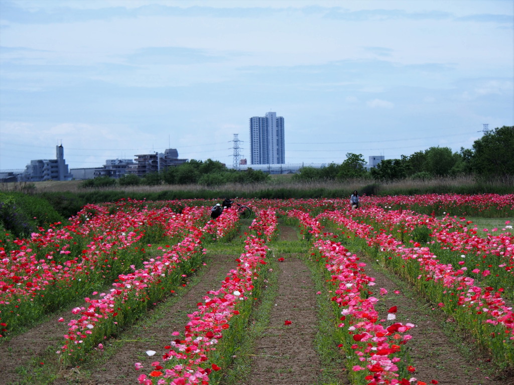 ポピー畑のポピーが満開だ。