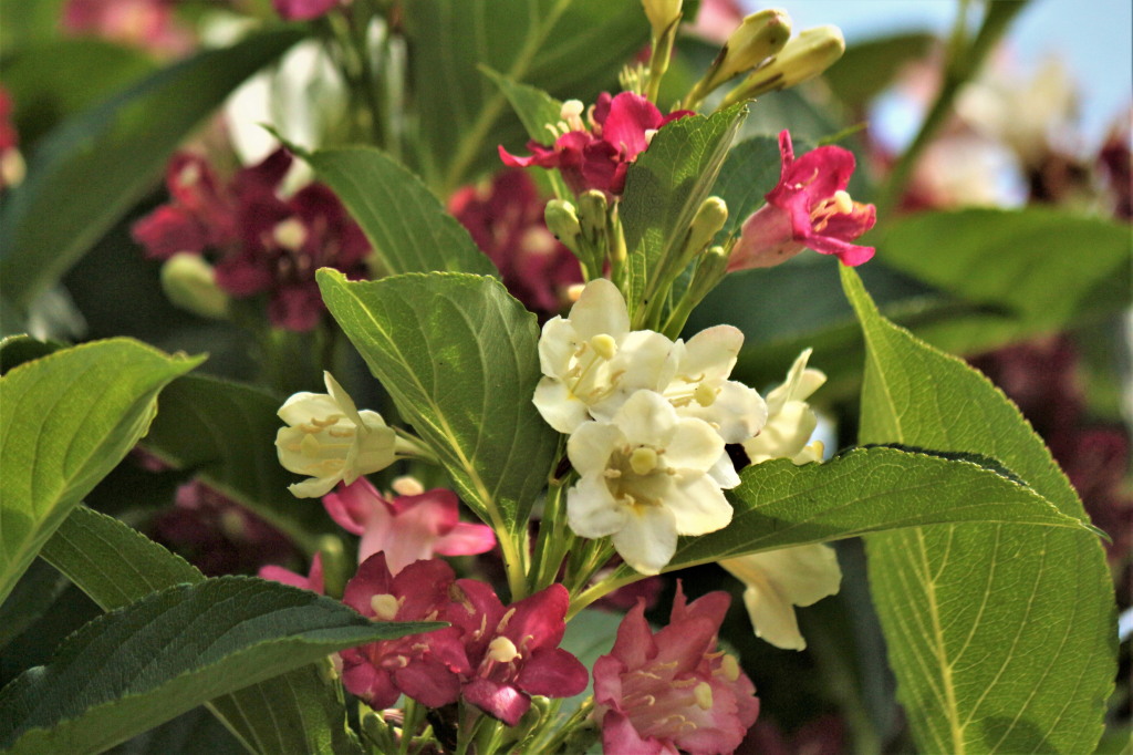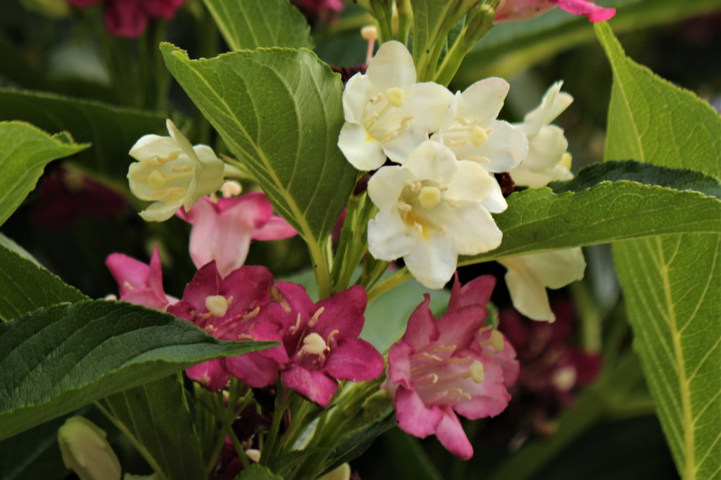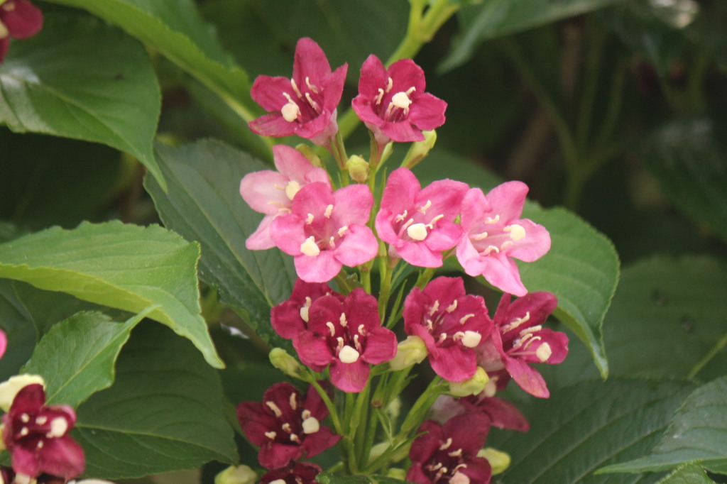 今日の出会い 白から赤へ(ハコネウツギ)