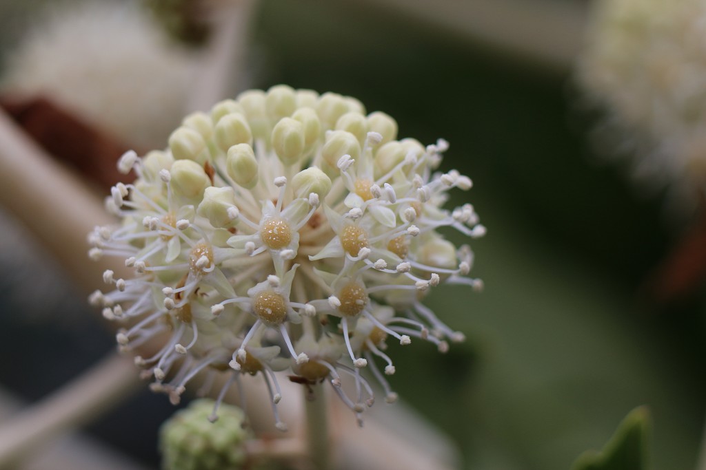 ヤツデが咲いている。