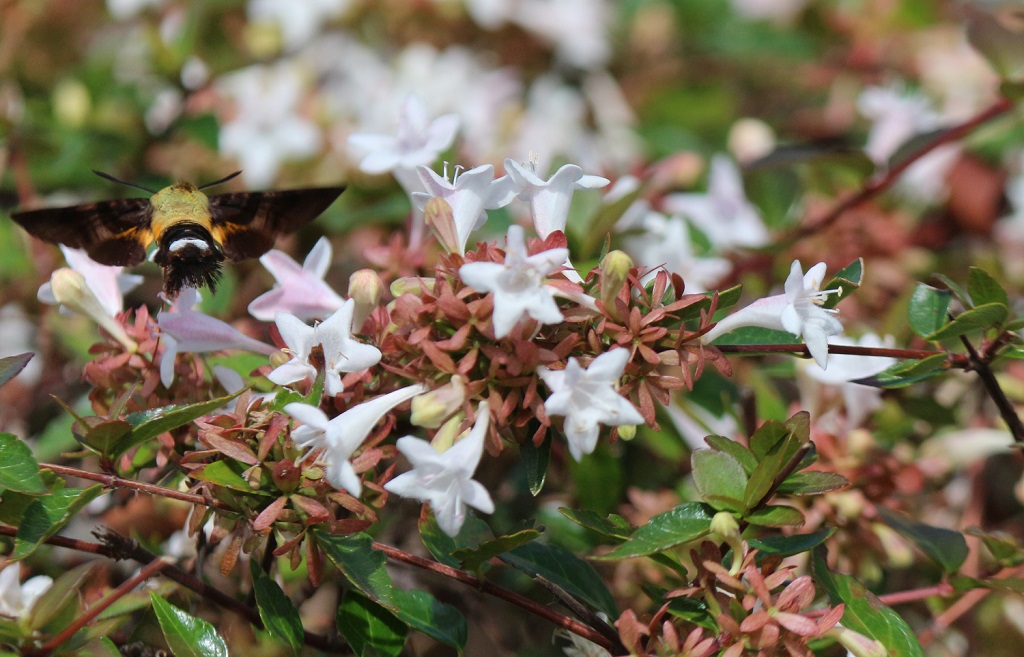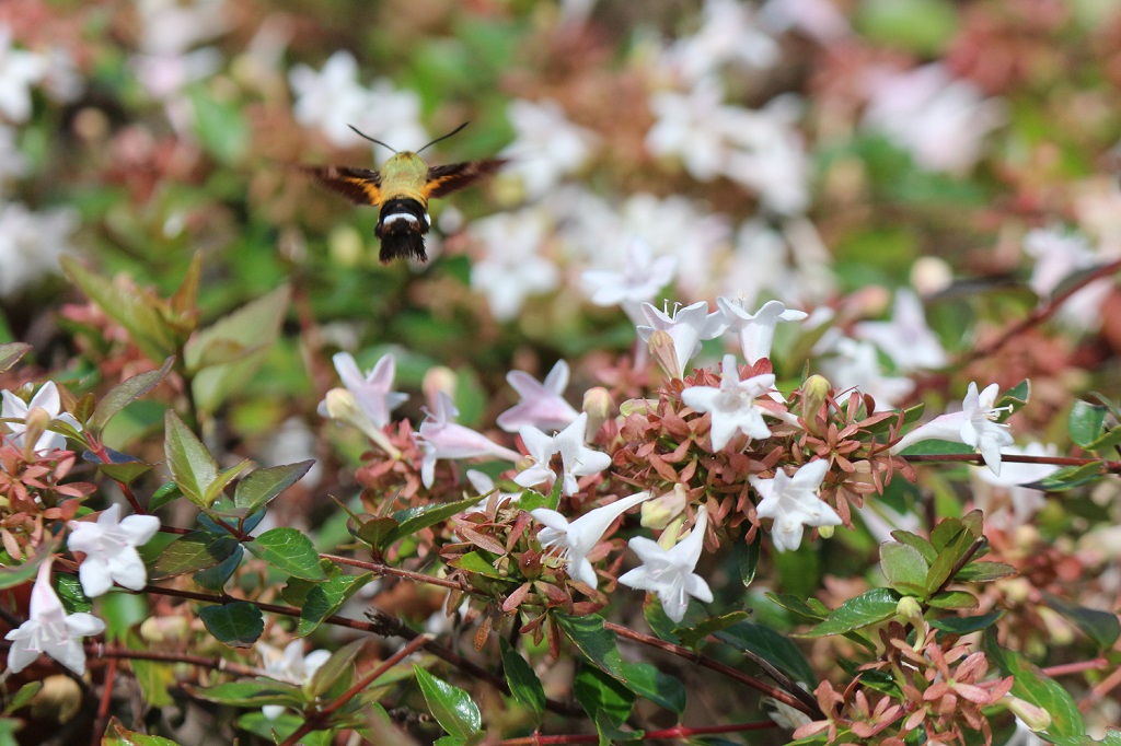 遊歩道沿いのアベリアの花にホシホウジャクが来ていた。