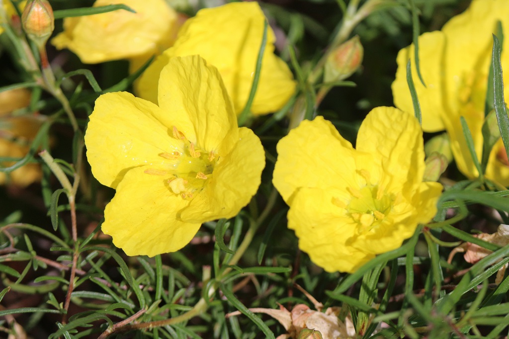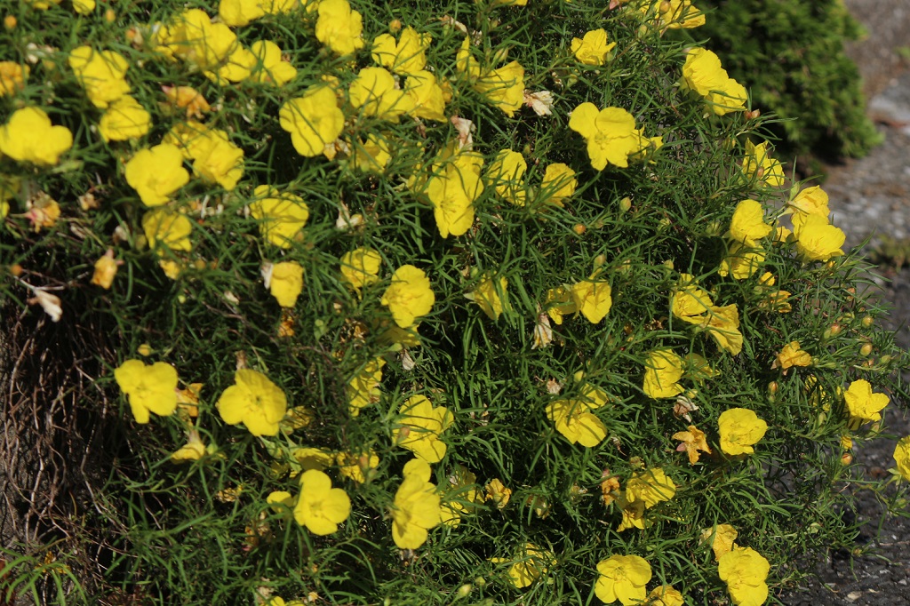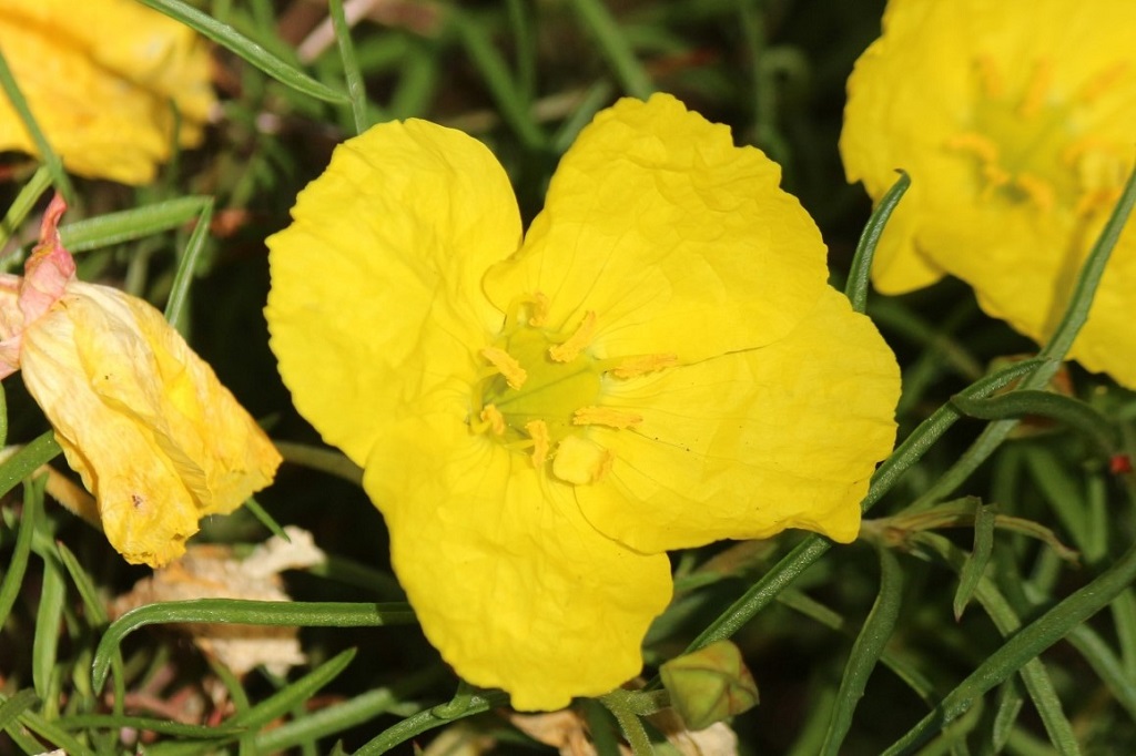マツヨイグサやコマツヨイグサの様に、萎(しぼ)んだ後の花殻(はながら)が少しオレンジ色になる。