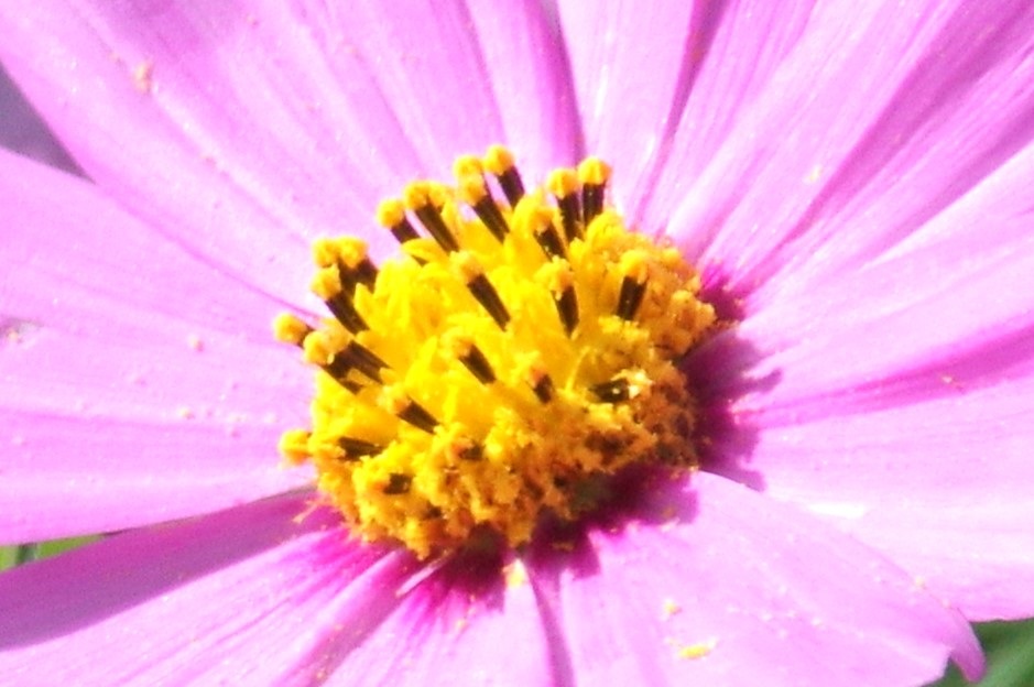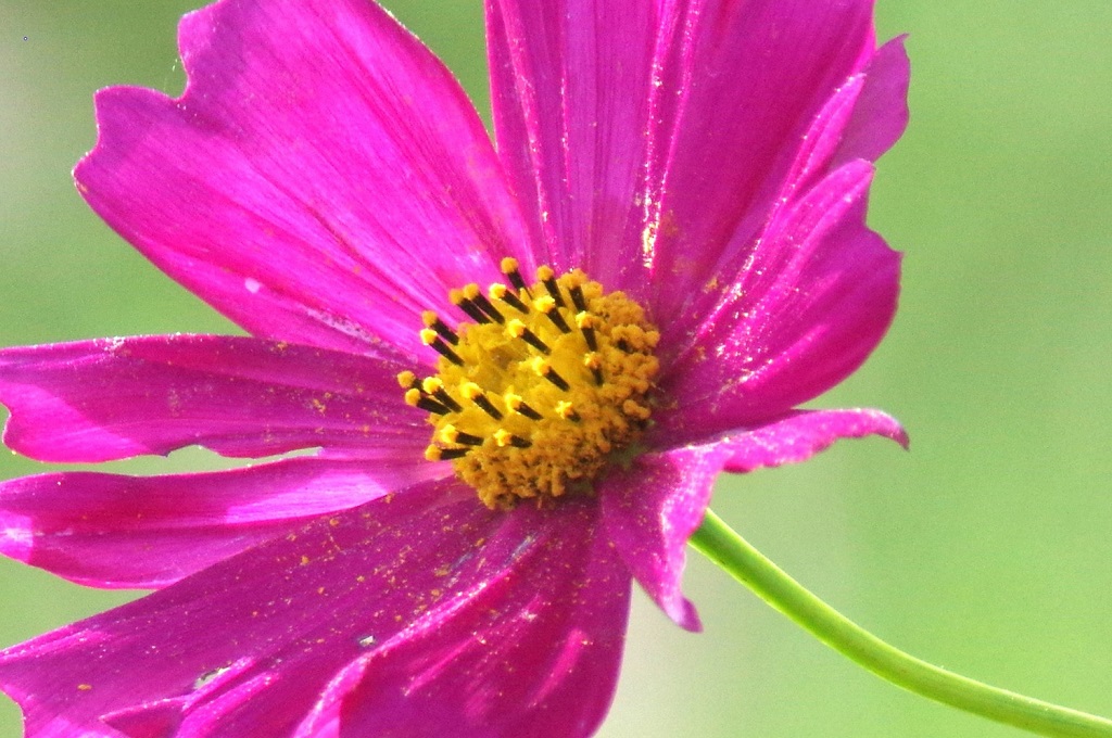 コスモスの花は周辺の花弁の舌状花と中心部の筒状花から出来ている。